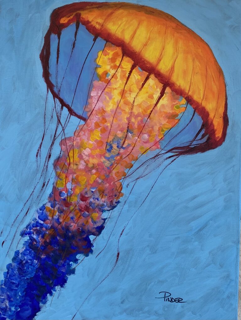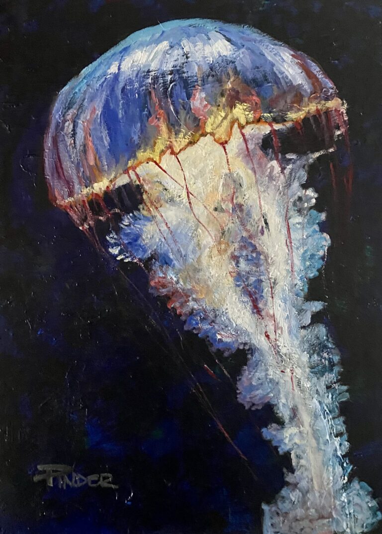 Jellyfish are strangely beautiful creatures. Simple in their overall structure, they nevertheless create a seemingly infinite variety of color and complexity. They are a challenge to paint, but worth the effort. You can see more of them here.